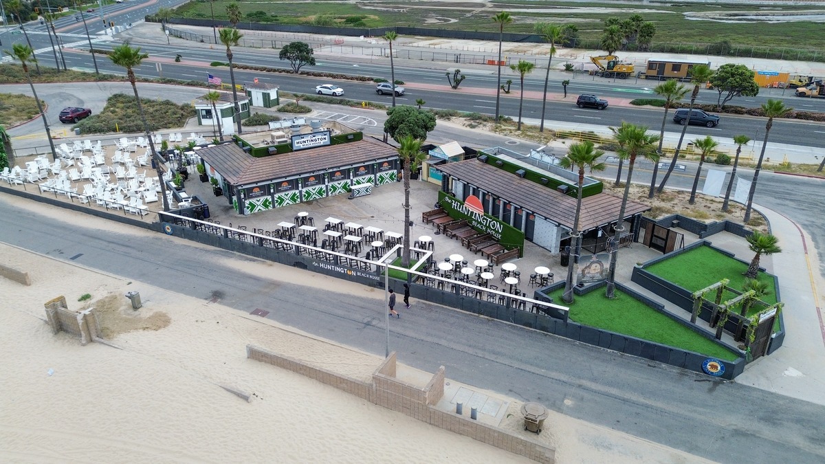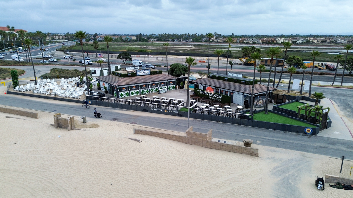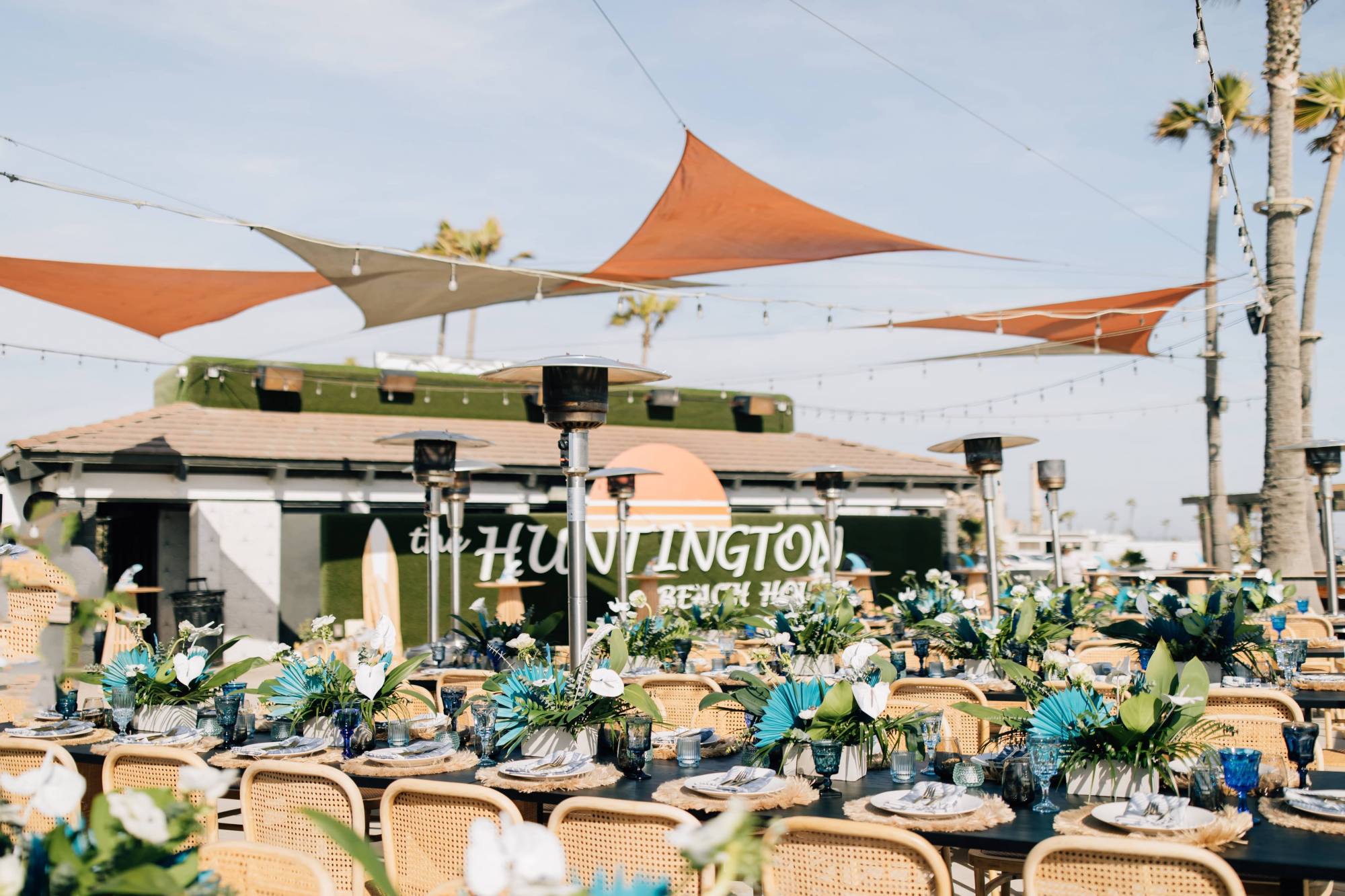 Located in the heart of Huntington Beach at Huntington Beach State Beach near Beach Blvd and PCH, The Huntington Beach House is a stylish beachfront venue raised above the boardwalk for uninterrupted ocean views. The space features a large concrete area for flexible event layouts, while a toes-in-the-sand section with Adirondack chairs and portable fire pits keeps the beach vibes alive.